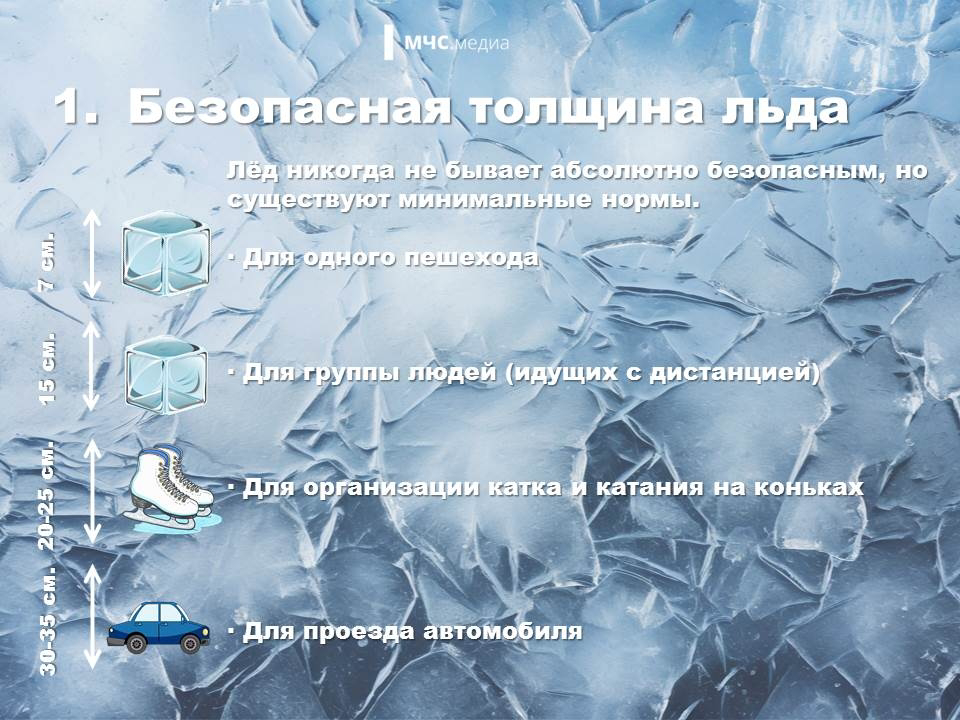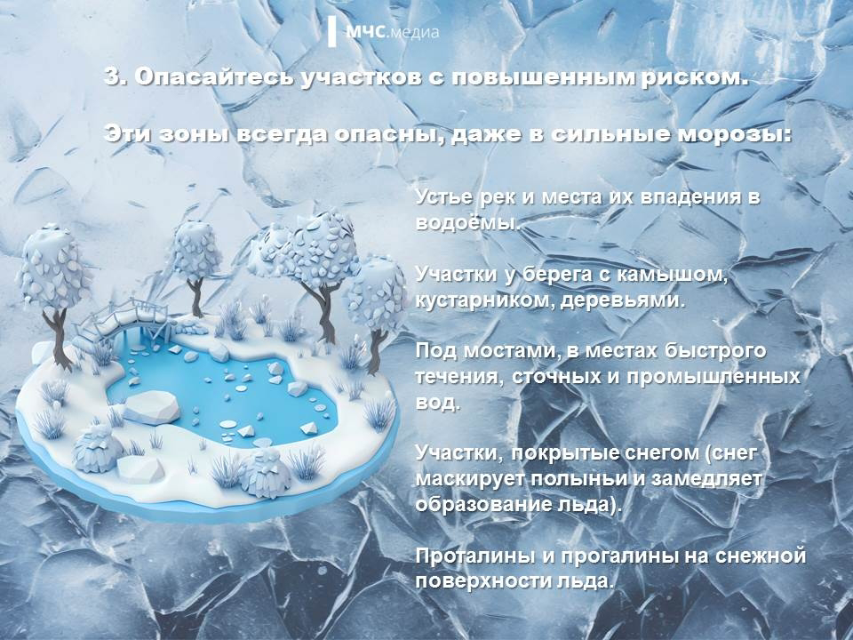 * ЗАПРЕЩАЕТСЯ: выходить на лед в состоянии алкогольного опьянения, прыгать и бегать по льду, собираться большим количеством людей в одной точке, выходить на тонкий лед, который образовался на реках с быстрым течением.
